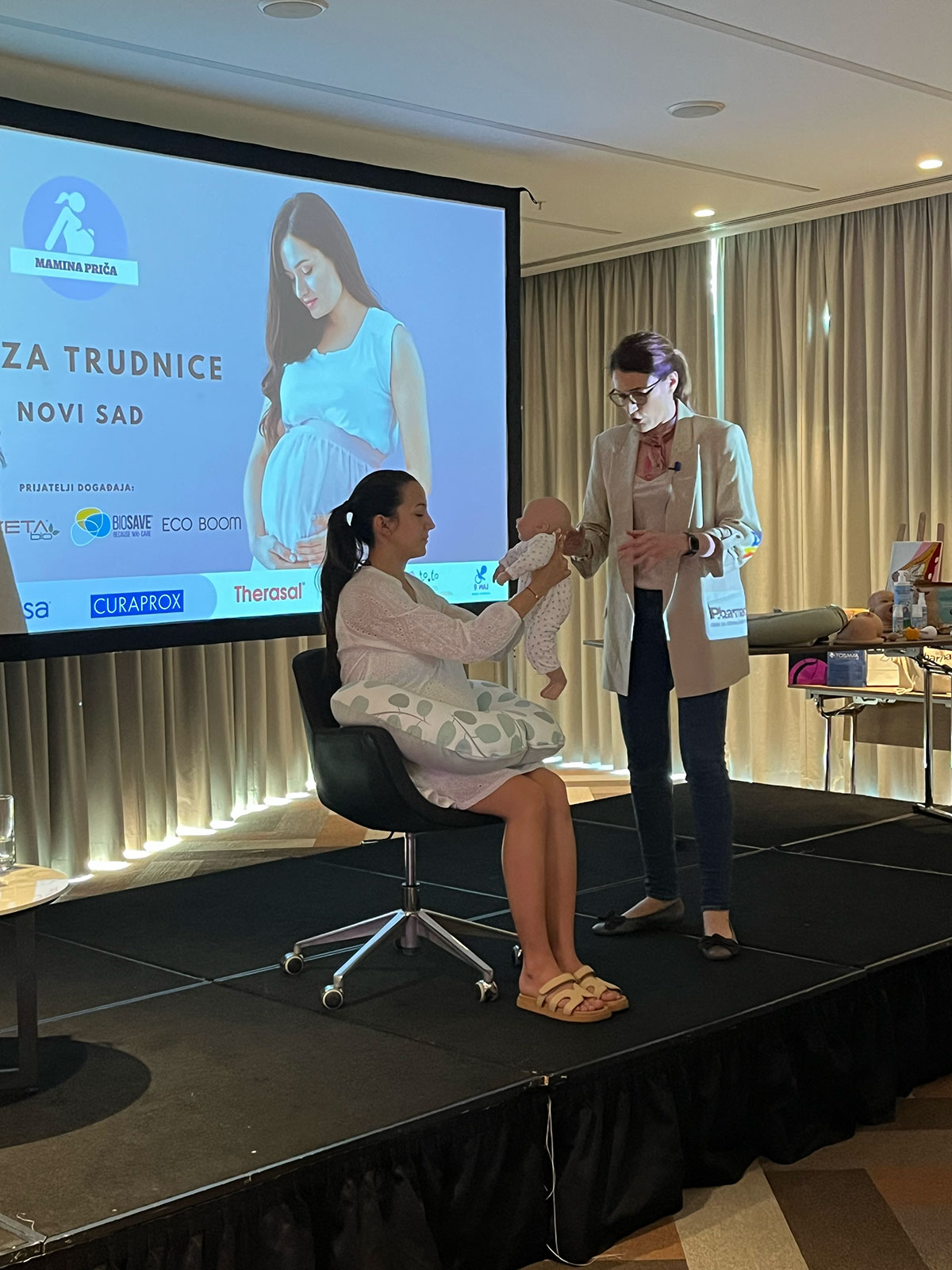 Prvi događaj u organizaciji Mamine priče u Novom Sadu održan je 10. juna u hotelu Sheraton. Predavanja su održale dr Ivana Anđić, specijalista ginekologije i akušerstva iz porodilišta Betanija, i Jelena Perić, specijalista za dojenje, koje su govorile o porođaju i uspostavljanju laktacije.